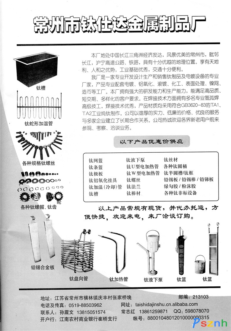 | 公司名稱: | 常州市鈦仕達金屬制品廠 | ||