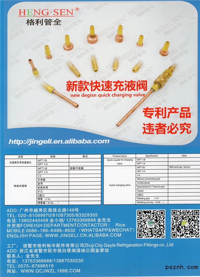 諸暨市格利制冷配件有限公司 防暴塞_分岐器_充液閥