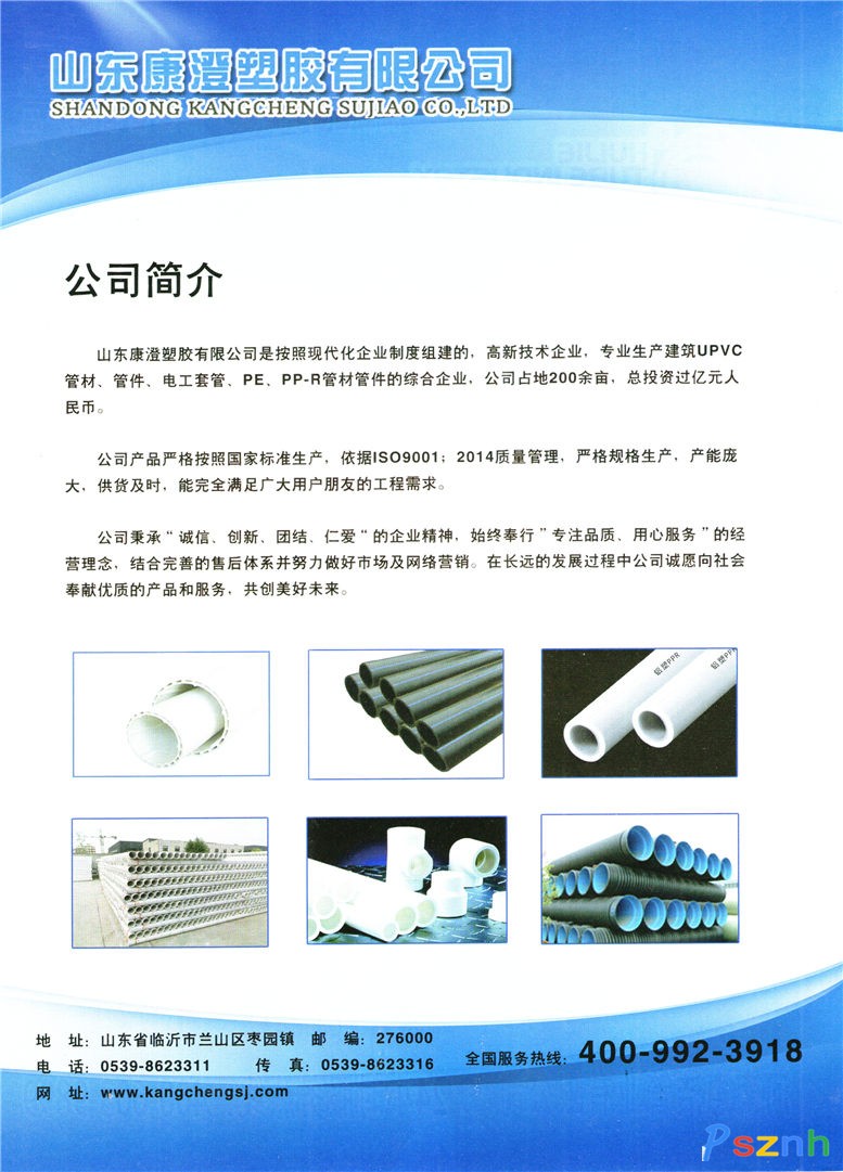 山東康澄塑膠有限公司 PVC-V排水供水管材管件 PE管材管件 PE-RT管材管件點(diǎn)擊:795 查看原圖![]() ![]() ![]() 山東康澄塑膠有限公司