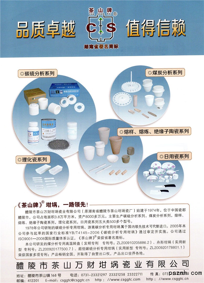 | 公司名稱: | 醴陵市茶山萬財坩堝瓷業(yè)有限公司 | ||