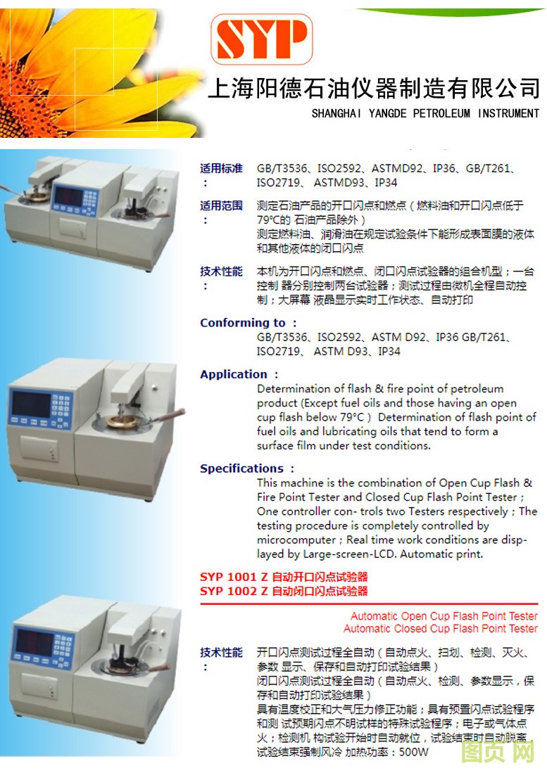 上海陽德石油儀器制造有限公司-擁有分析燃料油、潤滑油、絕緣油、潤滑脂、瀝青、石蠟等品質(zhì)的常規(guī)儀器、低溫儀器、自動化儀器及大型儀器 100多種點擊:579 查看原圖![]() ![]() ![]() 簡介:
