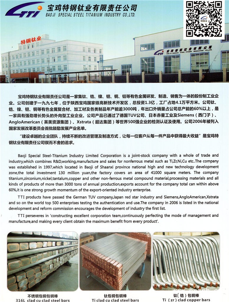 | 公司名稱: | 寶雞特鋼鈦業(yè)有限責任公司 | ||