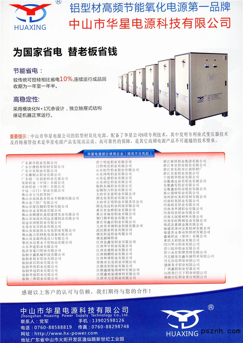 中山市華星電源科技有限公司 高頻鋁氧化電源_高頻電鍍電源_高頻電解電源點(diǎn)擊:668 查看原圖![]() ![]() ![]() 佛山 中山市中山火炬開(kāi)發(fā)區(qū)岐濠路106號(hào)D棟//深圳辦事處