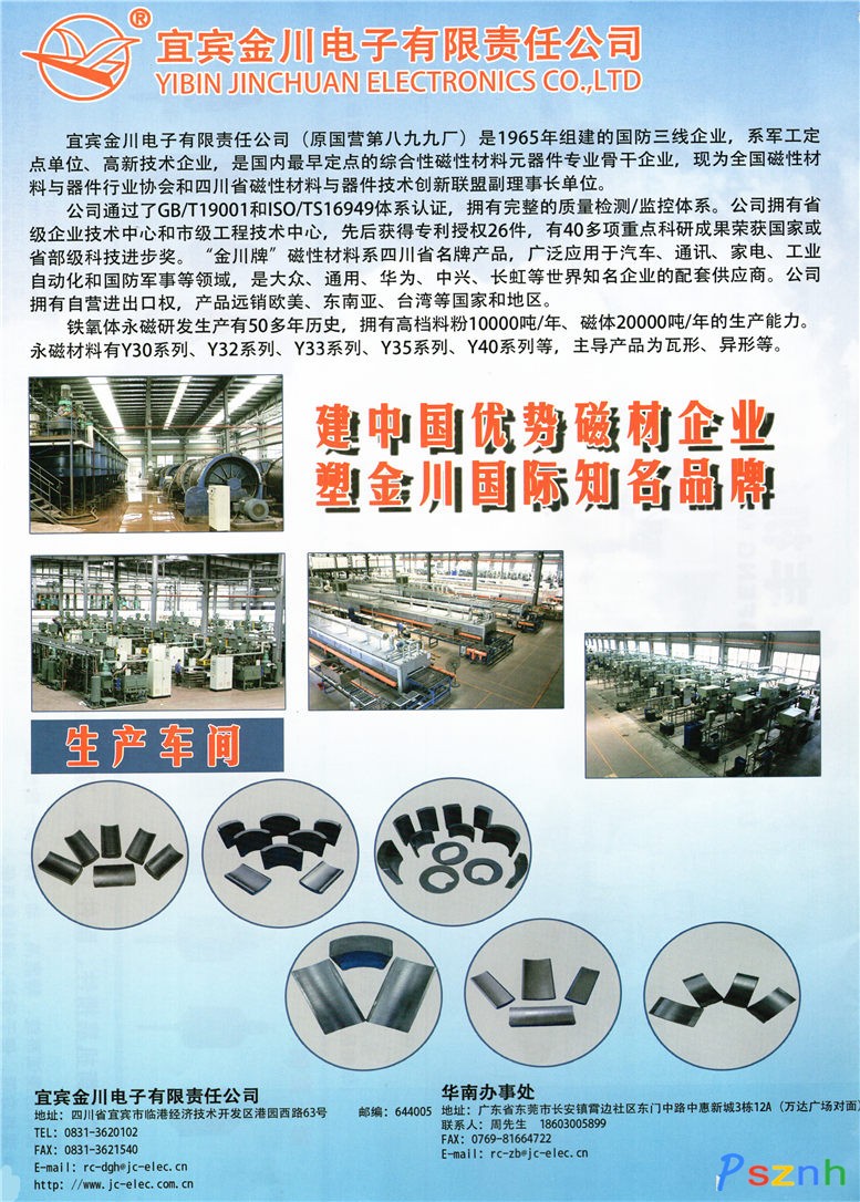 宜賓金川電子有限責(zé)任公司 鐵氧體材料 永磁鐵氧體 軟磁鐵氧體點擊:735 查看原圖![]() ![]() ![]() 地址:宜賓市臨港經(jīng)濟開發(fā)區(qū)港園路西段63號