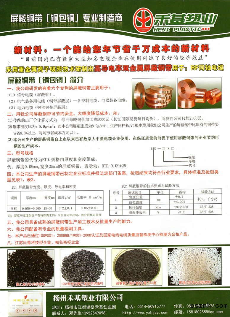 江蘇揚(yáng)銅新材料有限公司 供應(yīng)電纜料(NDJ) 給排水管道料(HDPE)