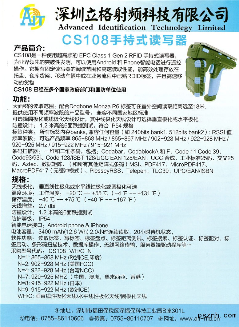 | 聯(lián)系方式: | 0755-86110606 | 官方網(wǎng)址: | ait-rfid.cn |