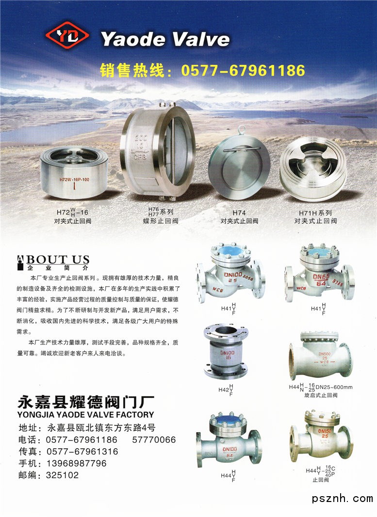 永嘉縣耀德閥門廠 止回閥點擊:614 查看原圖![]() ![]() ![]() 公司名稱: 永嘉縣耀德閥門廠