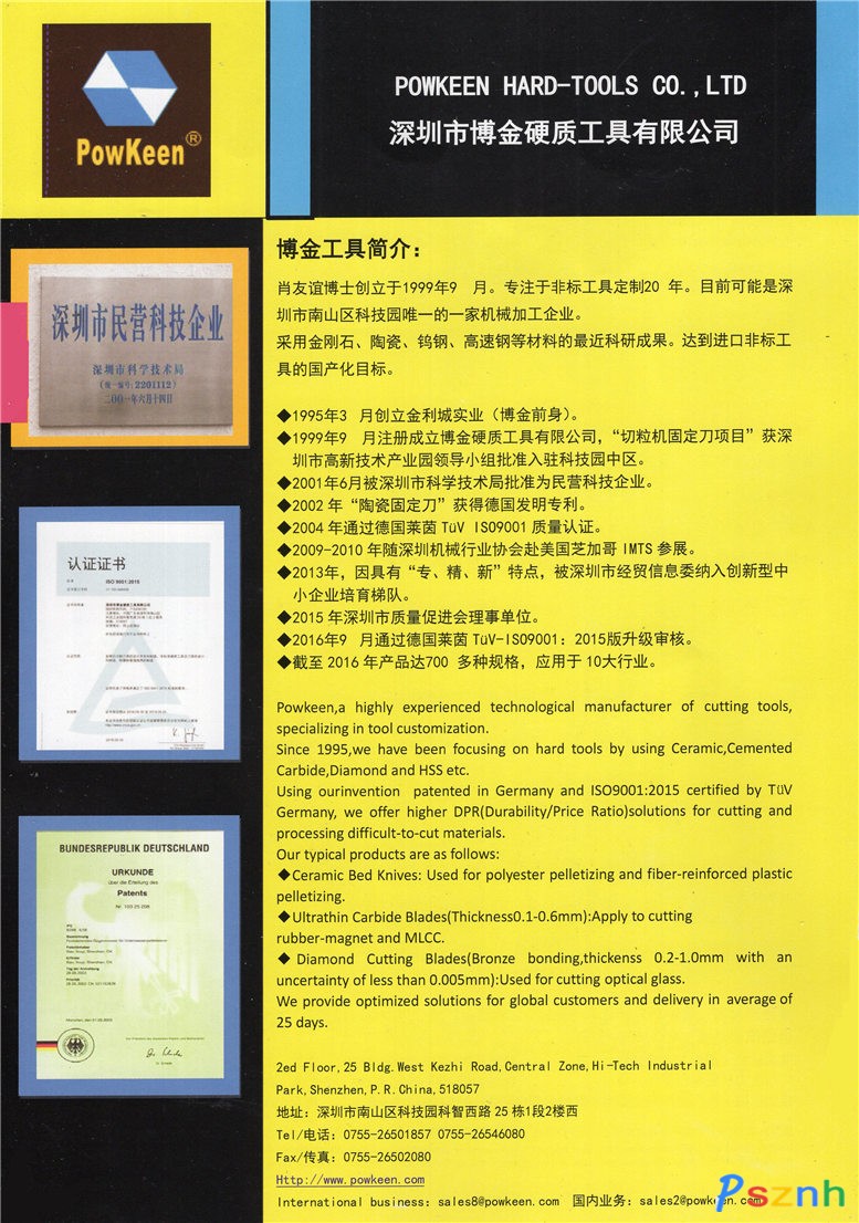 經(jīng)營范圍: 精密陶瓷、硬質(zhì)合金的深加工;非標硬質(zhì)工具、機械零件、模具的開發(fā)、生產(chǎn)、銷售(不含專營、???、專賣產(chǎn)品及限制項目);經(jīng)營進出口業(yè)務(法律、行政法規(guī)、國務院決定禁止的項目除外,限制的項目須取得許可后方可經(jīng)營)。;