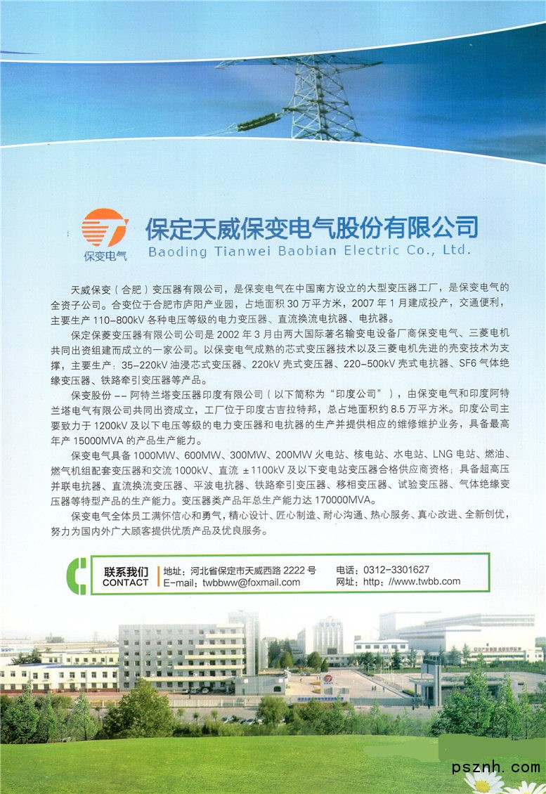 | 公司名稱: | 保定天威保變電氣股份有限公司 | ||