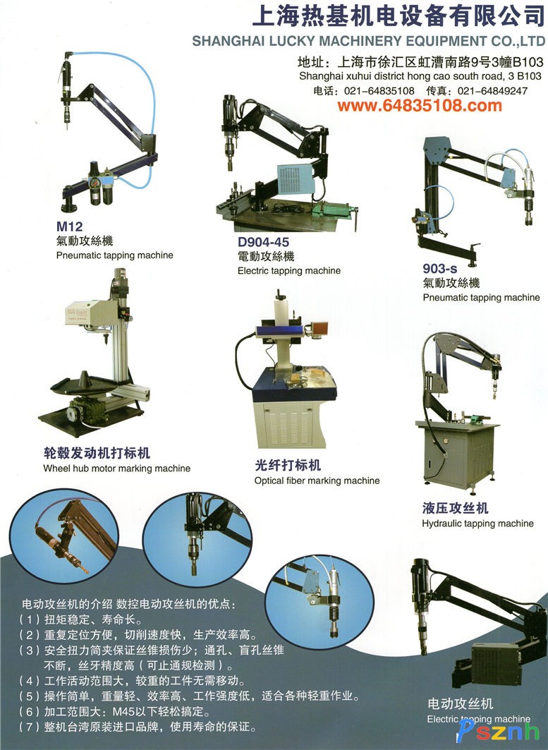 上海熱基機電設備有限公司_機電設備_打標機_攻絲機_高頻加熱機點擊:2138 查看原圖![]() ![]() ![]() 公司名稱:上海熱基機電設備有限公司