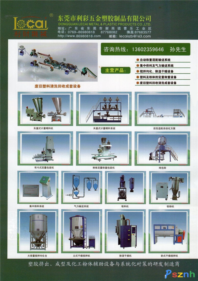 東莞市利彩五金塑膠制品有限公司_擠出主機(jī)_自動配料系統(tǒng)_改性塑料配料系統(tǒng)_自動配料生產(chǎn)線_廢舊塑料清洗設(shè)備_靜電分選機(jī)_塑料包裝