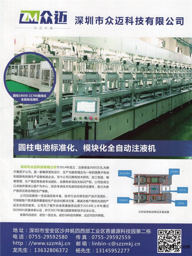 深圳市眾邁科技有限公司 鋰離子電池 超級電容器 深圳電池展點擊:2101 查看原圖![]() ![]() ![]() 曹先生 135 1051 6121 深圳市眾邁科技有限公司電 話|0755-29592580傳 真|0755-29592559郵 編|518103地 址|廣東 深圳 寶安區(qū) 福永街道富橋第三工業(yè)區(qū)華大B棟4樓公司主頁|www.szzmkj.cn