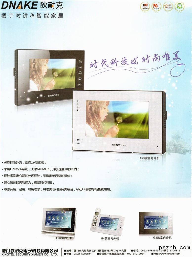 廈門狄耐克智能科技股份有限公司 S9款免提可視室內(nèi)分機(jī) G6款免提可視室內(nèi)分機(jī)