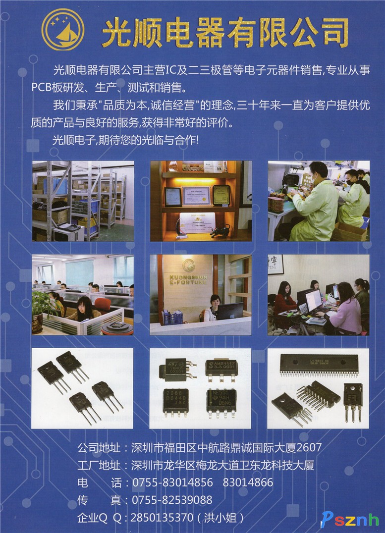 深圳市順發(fā)光電子有限公司 電子元器件 集成電路點(diǎn)擊:1285 查看原圖![]() ![]() ![]() 深圳光順電子有限公司 電子元器件,集成電路