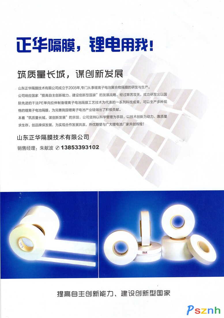 山東正華隔膜技術有限公司 鋰離子電池隔膜 鋰電池 新型電源技術