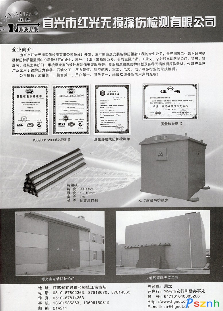 | 公司名稱(chēng): | 宜興市紅光無(wú)損探傷檢測(cè)有限公司 | ||