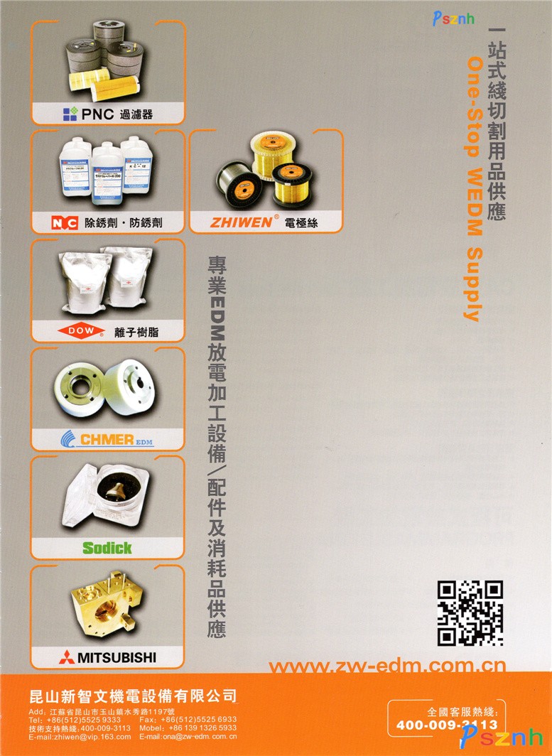 地 址:中國江蘇省昆山市城北水秀路1197號(hào) 郵政編碼:215316 電 話:86-0512-55259333 傳 真:86-0512-57791770 公司主頁:http://www.zw-edm.com.cn |