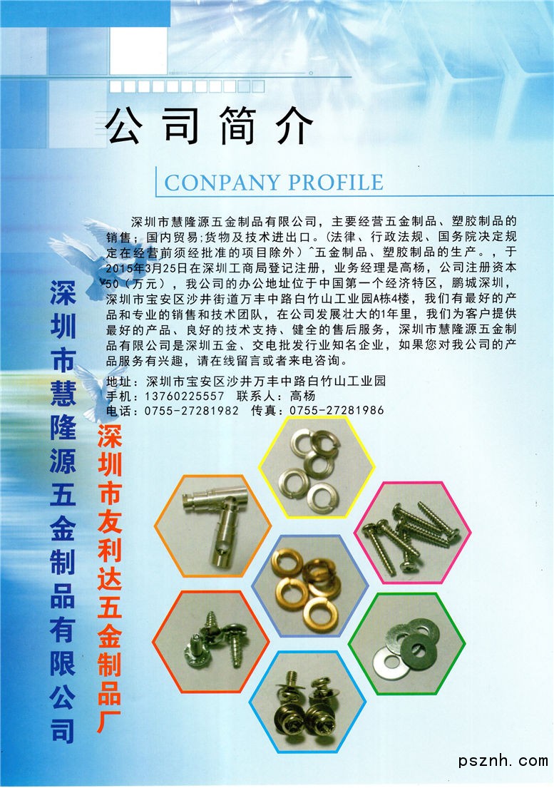 | 公司名稱: | 深圳市慧隆源五金制品有限公司 | ||