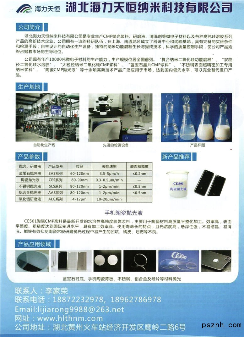 湖北海力天恒納米科技有限公司 陶瓷CMP漿料_金剛石研磨液_液態(tài)蠟