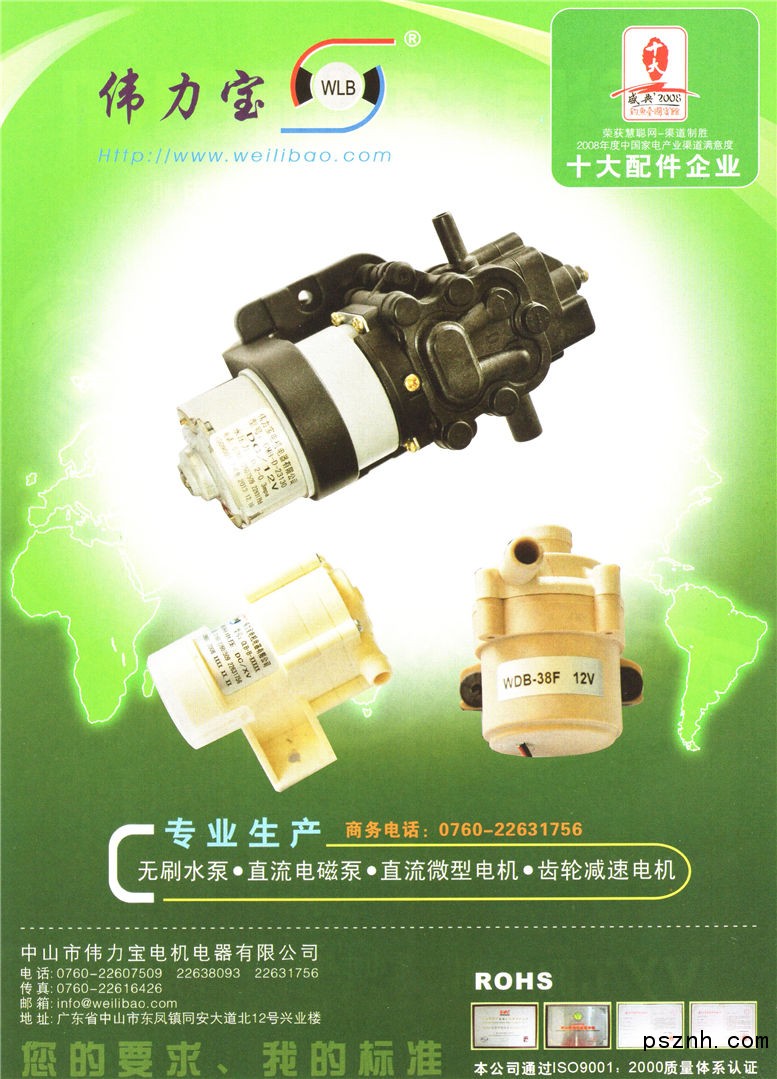 中山市偉力寶電機(jī)電器有限公司 直流微型電機(jī)、無(wú)刷電機(jī)、齒輪減速電機(jī)、無(wú)刷水泵、電磁泵、隔膜泵、煤油泵