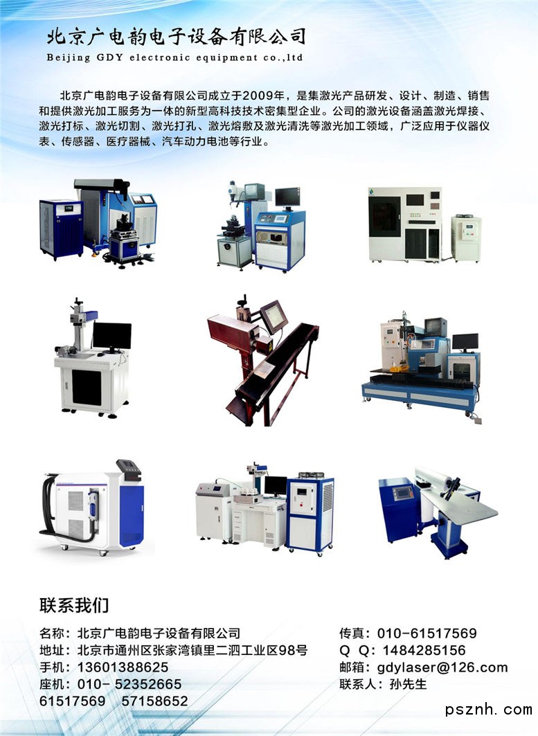 北京廣電韻電子設(shè)備有限公司 激光電子 激光設(shè)備 激光焊接 激光打標(biāo) 激光切割 激光打孔 激光熔覆和激光清洗 多國儀表展