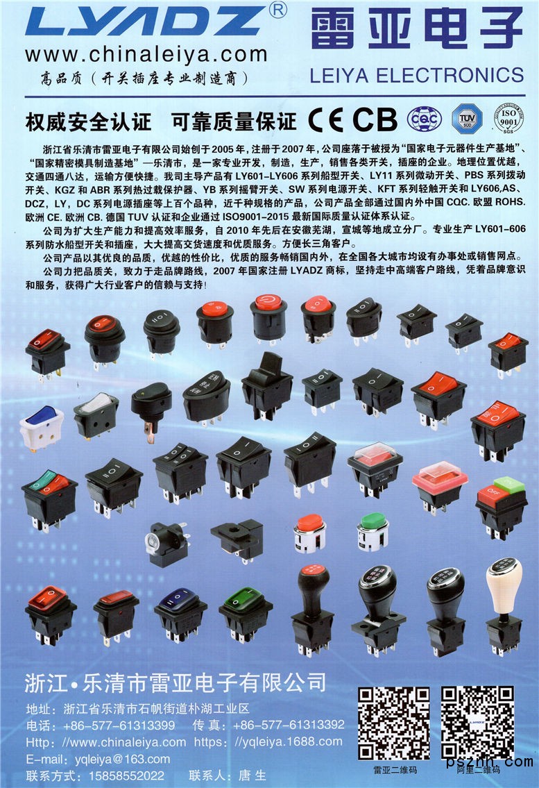 樂清市雷亞電子有限公司 LY601-LY606系列船型開關(guān)、LY11系列微動(dòng)開關(guān)、PBS系列撥動(dòng)開關(guān)