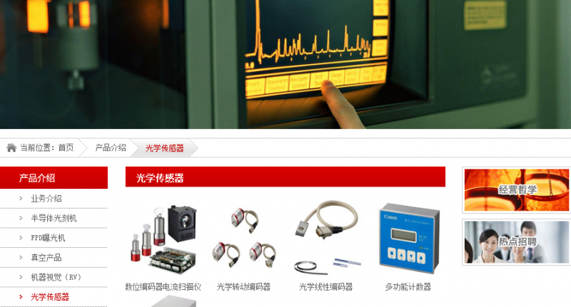 佳能光學(xué)設(shè)備(上海)有限公司分公司 半導(dǎo)體光刻機(jī) FPD曝光機(jī) 真空產(chǎn)品 機(jī)器視覺(RV) 光學(xué)傳感器