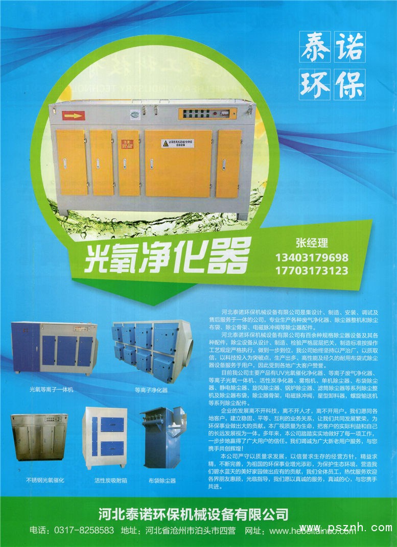河北泰諾環(huán)保機械設備有限公司 UV光氧催化凈化器 等離子廢氣凈化器 等離子光氧一體機點擊:527 查看原圖![]() ![]() ![]() 聯(lián)系人:張經(jīng)理
