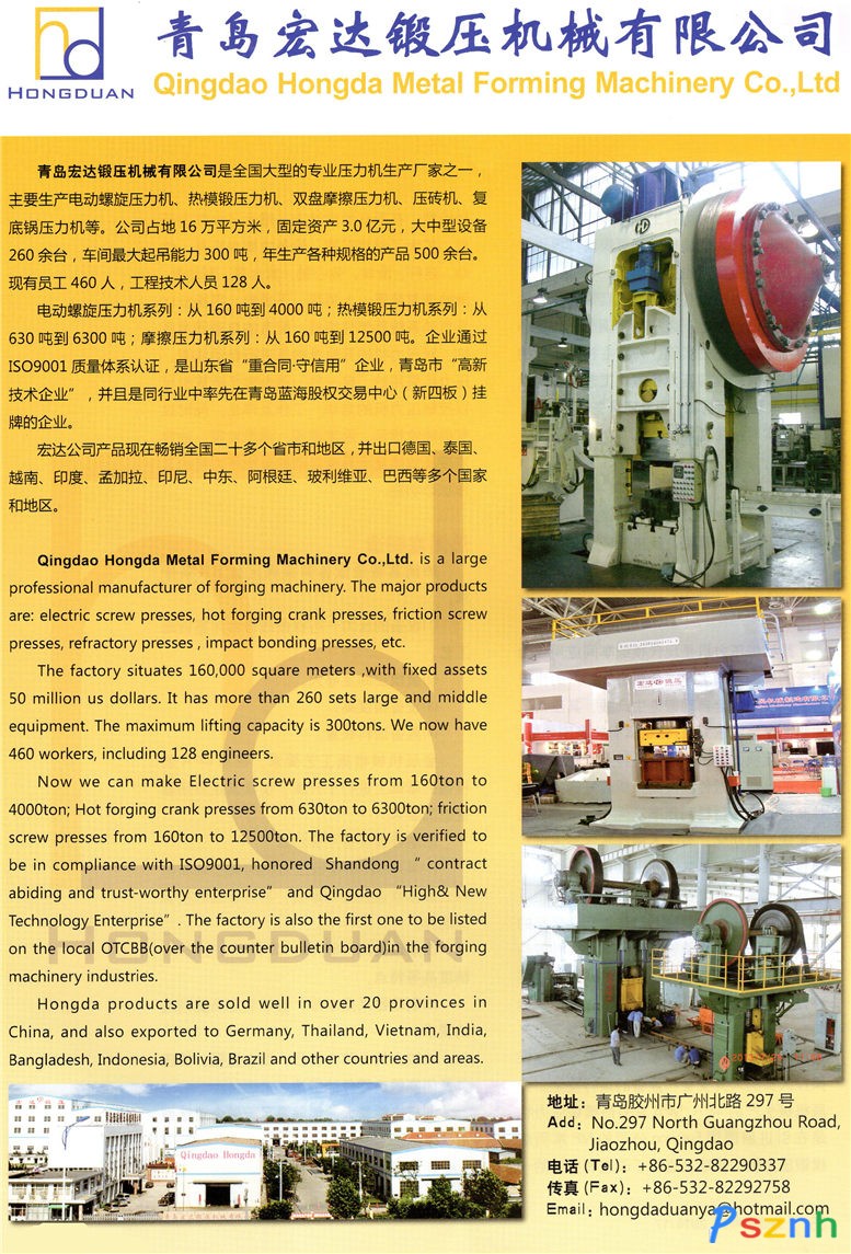 青島宏達(dá)鍛壓機(jī)械有限公司 摩擦壓力機(jī) 電動(dòng)螺旋壓力機(jī) 熱模鍛壓力機(jī)