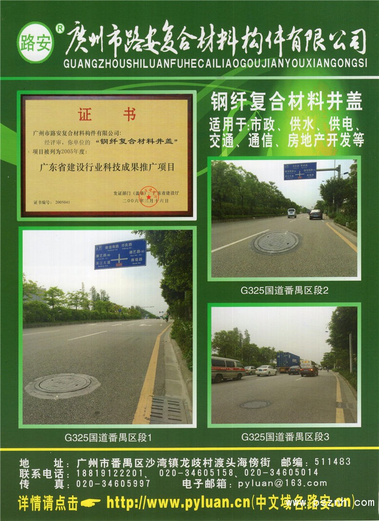 廣州市路安復(fù)合材料構(gòu)件有限公司 復(fù)合材料沙井蓋_鋼纖復(fù)合材料井蓋點(diǎn)擊:558 查看原圖![]() ![]() ![]() 電 話: