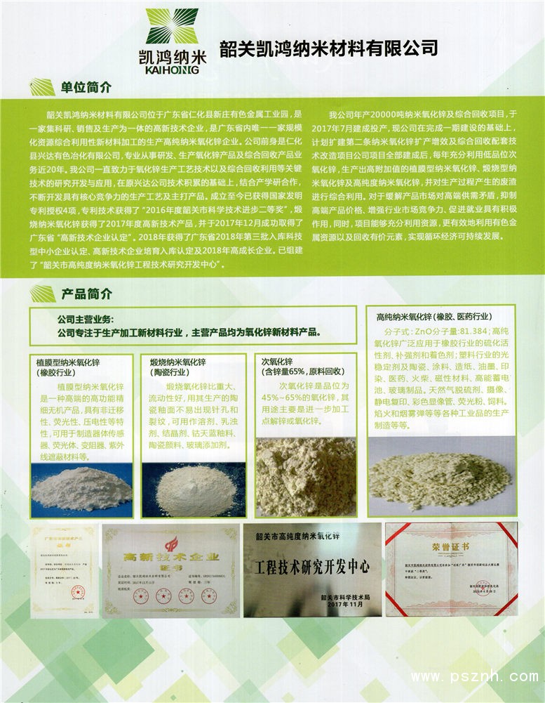 Shaoguan Kaihong Nano Materials Co.,Ltd http://www.khnano.com 地址:韶關市仁化縣周田新莊有色金屬工業(yè)園內(nèi) 電話:0751-6342785 |