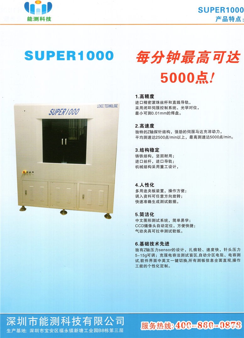 深圳市能測科技有限公司 高速高精度皮帶飛針測試機_高速高精度絲桿飛針測試機_SUPER800點擊:476 查看原圖![]() ![]() ![]() 公司名稱深圳市能測科技有限公司