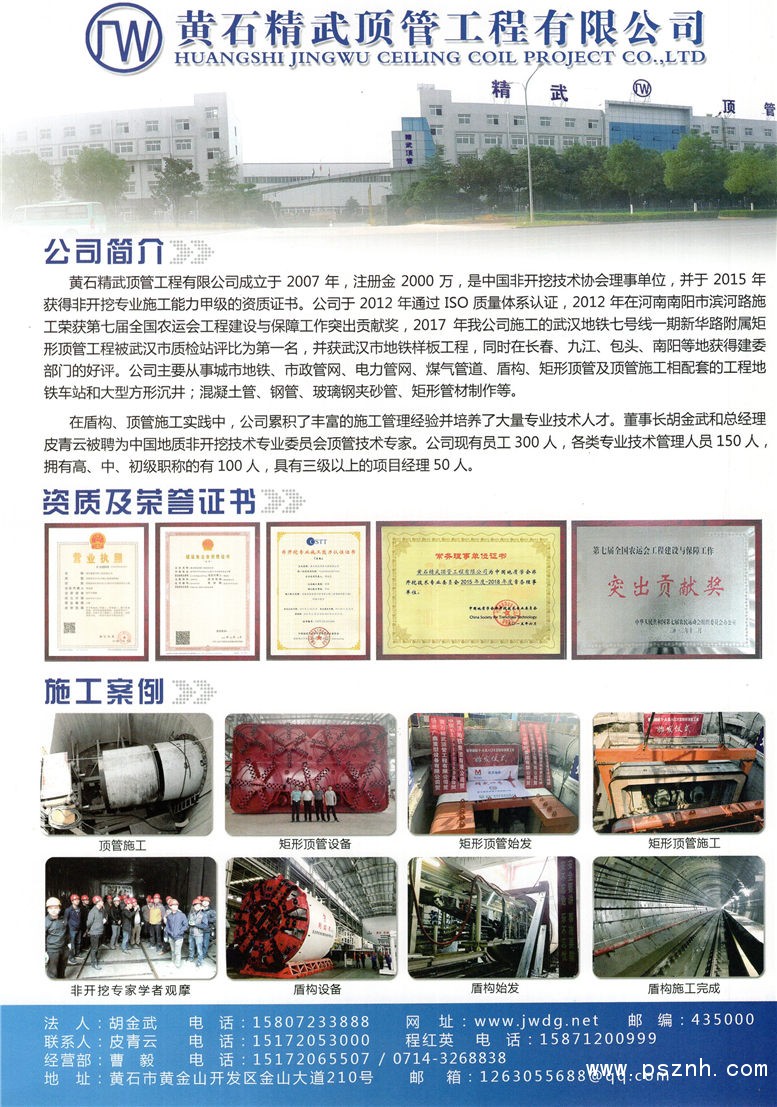 黃石精武頂管工程有限公司 管道施工_燃?xì)夤艿腊惭b_頂管機械制造維修