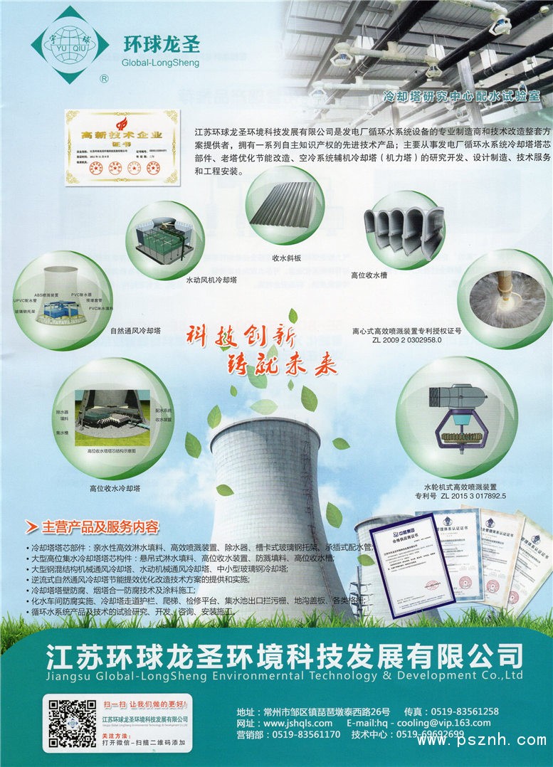 | 經營范圍: | 環(huán)境科技的研發(fā)、技術轉讓、咨詢服務;冷卻塔、除水器、噴濺裝置、硅酸鋁保溫材料、玻璃鋼制品、塑料工業(yè)配件、水處理設備、水質污染防治設備、環(huán)保設備、塑料機械、焊割工具及配件、五金、機械零部件、太陽能光伏產品、風能設備及零部件的研發(fā),設計,制造,加工,銷售,安裝,調試并提供相關技術服務;冷卻塔專業(yè)清洗服務;園林綠化工程施工;塑料工業(yè)配件、鐵精粉、化工產品、化工原料銷售;氯磺化聚乙烯防腐涂料、PVC粘合劑、環(huán)氧煤瀝青防腐涂料、建筑內外墻涂料(純丙烯酸建筑外墻涂料、苯丙烯酸建筑外墻涂料)、PN-1氰凝防水涂料、建筑 | ||
