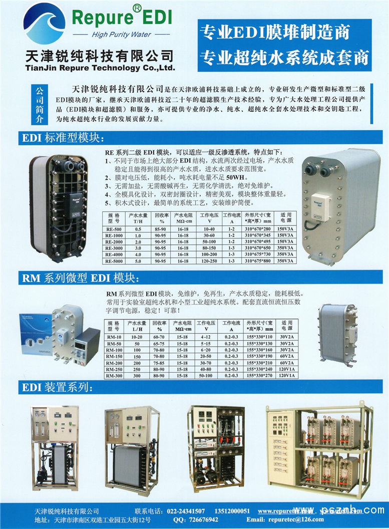 天津銳純科技有限公司 EDI模塊及裝置 超濾膜及設(shè)備 凈水純水設(shè)備 實(shí)驗(yàn)室超純水機(jī) 水處理材料 家用凈水產(chǎn)品