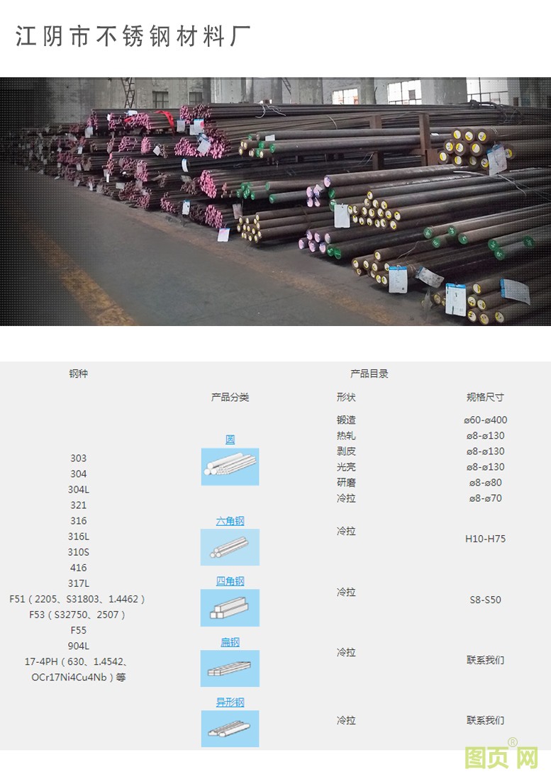 江陰市不銹鋼材料廠-不銹鋼冶煉、鍛造、鑄造、熱軋、冷精棒材和型鋼點(diǎn)擊:426 查看原圖![]() ![]() ![]() 簡(jiǎn)介:
