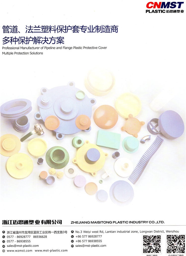 ![]() 邁思通塑業(yè)先后擁有七條完整生產(chǎn)聚乙烯材料的保護蓋和塞的生產(chǎn)線,目前已有600多個品種,8,000 多種規(guī)格,尺寸從1/8” 到 80”的塑料保護產(chǎn)品 。產(chǎn)品包括:管子保護蓋、管子內(nèi)塞、錐形蓋及塞、帶把手錐形蓋及塞、凸緣及無凸緣蓋、無螺紋蓋、全護套法蘭蓋、四眼法蘭保護蓋、多用型法蘭保護蓋、寬邊保護蓋、石油鋼管螺紋保護器等。在發(fā)展規(guī)模更大的同時,我們將繼續(xù)提供新的尺寸,并且增加不同系列的產(chǎn)品以供不同客戶的選擇。 如今浙江邁思通能夠自力設計、制造各類模具及產(chǎn)品,如果您正為一次的定制成型煩惱,請趕快聯(lián)系我們并了解我們低成本的模具吧!我們將為閣下提供更優(yōu)質(zhì)的產(chǎn)品,更全面的服務及創(chuàng)新的技術。