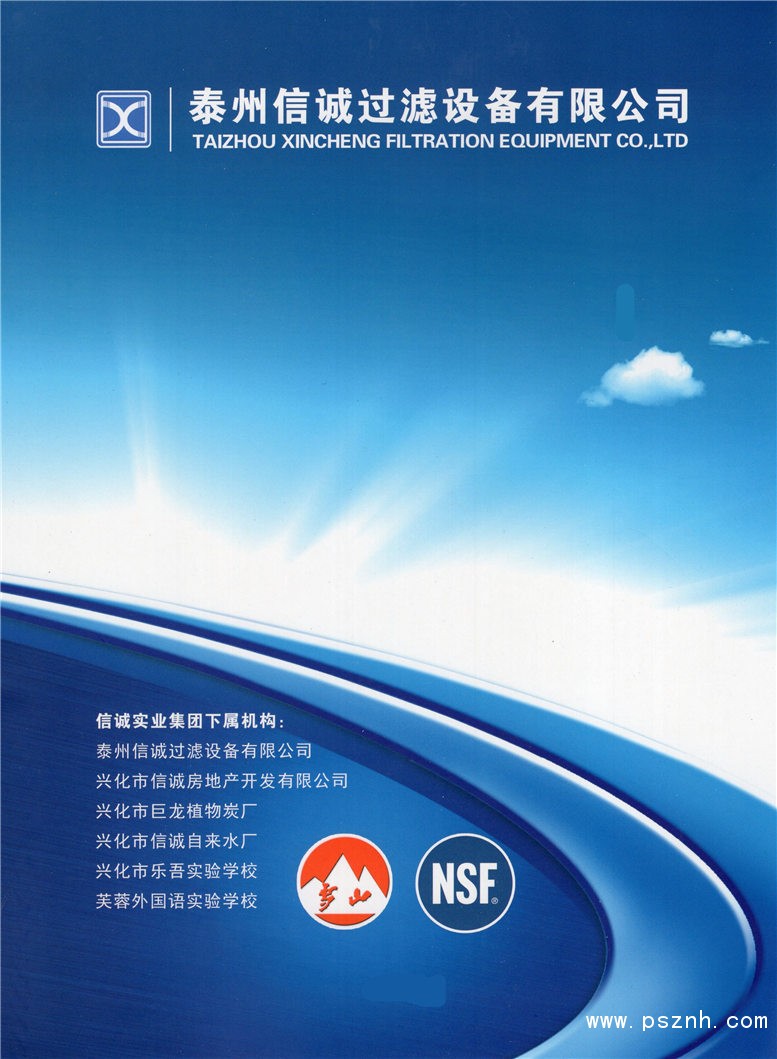 ![]() 信誠(chéng)實(shí)業(yè)集團(tuán)下屬機(jī)構(gòu):泰州信誠(chéng)過濾設(shè)備有限公司、興化市信誠(chéng)房地產(chǎn)開發(fā)有限公司、興化市巨龍植物炭廠、興化市信誠(chéng)自來水廠、興化市樂吾實(shí)驗(yàn)學(xué)校、興化市芙蓉外國(guó)語(yǔ)實(shí)驗(yàn)學(xué)校。 泰州信誠(chéng)過濾設(shè)備有限公司是信誠(chéng)實(shí)業(yè)集團(tuán)于2000年投資興辦,是國(guó)內(nèi)知名的過濾器材研發(fā)、設(shè)計(jì)、制造一體化的專業(yè)生產(chǎn)企業(yè)。經(jīng)過多年發(fā)展,現(xiàn)已形成規(guī)?;a(chǎn),公司擁有先進(jìn)的全電腦控制自動(dòng)化生產(chǎn)設(shè)備和檢測(cè)設(shè)施,并通過ISO9001質(zhì)量管理體系認(rèn)證,榮獲2014年度中國(guó)水工業(yè)行業(yè)品牌盛會(huì)“水處理配件材料優(yōu)質(zhì)供應(yīng)商”稱號(hào)。