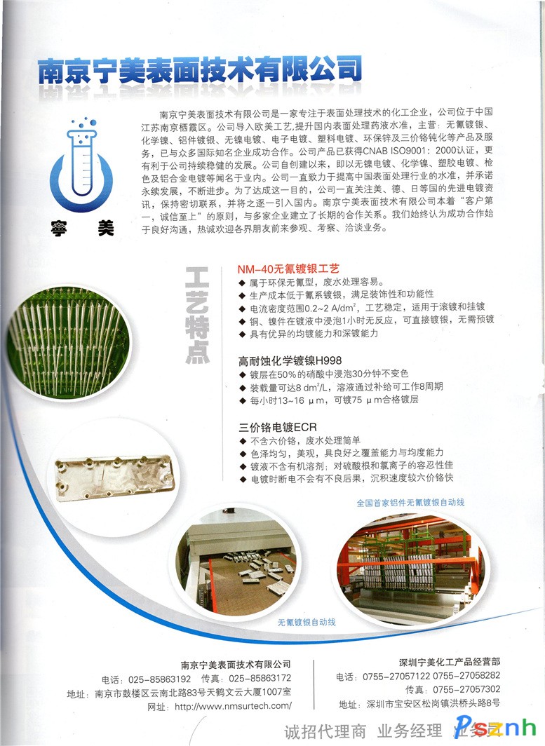 南京寧美表面技術(shù)有限公司 光亮鎳鍍液 電泳漆 塑膠電鍍 槍色 鋁合金電鍍