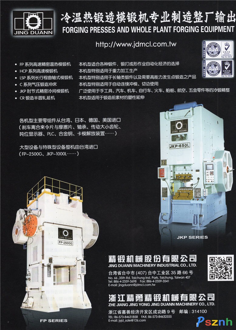 | 經(jīng)營(yíng)范圍: | 生產(chǎn)銷(xiāo)售鍛造、模鍛機(jī)、沖床、鍛造加熱爐、鍛造軋延機(jī)、切斷機(jī)、全自動(dòng)機(jī)械手及其零配件;模具制作、鍛造加工、汽車(chē)零配件制造;貨運(yùn):普通貨運(yùn)。 | ||