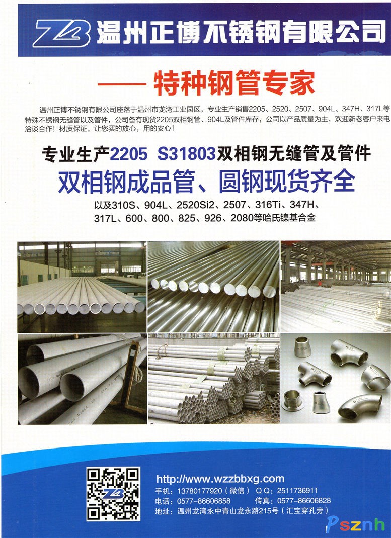 溫州正博不銹鋼有限公司_耐高溫管_雙相鋼_不銹鋼無縫管點擊:1832 查看原圖![]() ![]() ![]() 聯(lián)系人:項博
