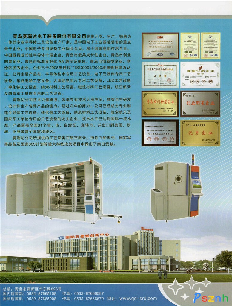 青島賽瑞達電子裝備股份有限公司 半導體技術專用工藝設備,電子元器件專用工藝設備,集成電路工藝設備,太陽能電池片專用工藝設備,