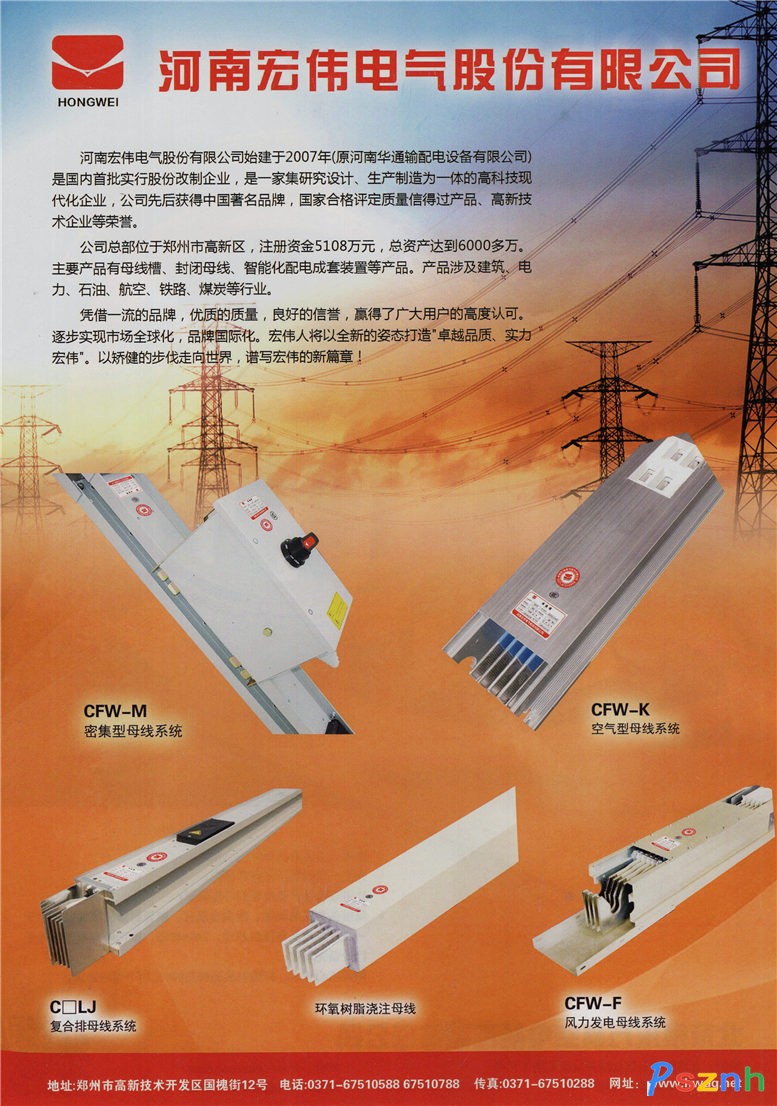 高低壓開關(guān)柜_空氣型母線系統(tǒng)_ 密集型母線系統(tǒng)-河南宏偉電氣股份有限公司點擊:2330 查看原圖![]() ![]() ![]() 企業(yè)地址:鄭州市高新技術(shù)開發(fā)區(qū)國槐街12號