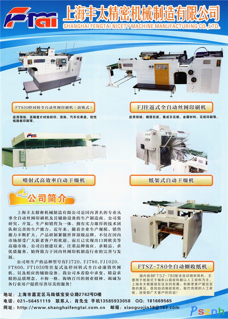 上海豐太精密機械制造有限公司 FT800停回轉(zhuǎn)全自動絲網(wǎng)印刷機 FTZJ型紙架式自動干燥機 全自動磨刀機