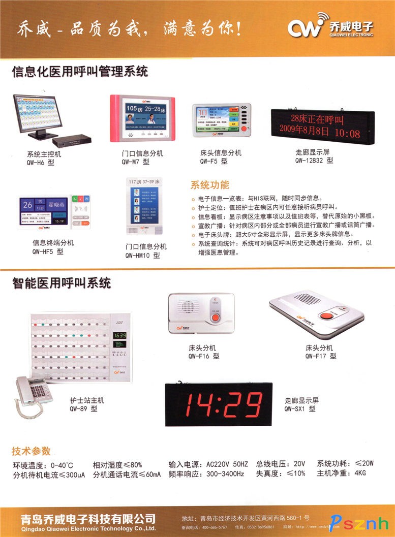 青島喬威電子科技有限公司 QW系列醫(yī)用呼叫系統(tǒng) QW-H系列信息化醫(yī)用通訊管理系統(tǒng) QW系列老年公寓通訊管理系統(tǒng)點擊:2590 查看原圖![]() ![]() ![]() 山東省青島市黃島區(qū)靈珠山街道辦事處柳東社區(qū)居委會辦公樓52-2號337室