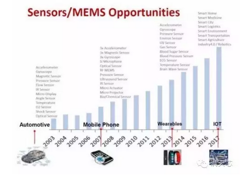 傳感器/MEMS在各領(lǐng)域的市場(chǎng)分布
