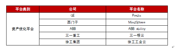 資產(chǎn)優(yōu)化平臺(tái)主要運(yùn)用在設(shè)備資產(chǎn)的管理與運(yùn)營(yíng)方面,它是通過現(xiàn)代傳感、移動(dòng)通信等技術(shù)連接智能終端,并從終端收集關(guān)于設(shè)備、環(huán)境等各類數(shù)據(jù)信息,然后基于這些數(shù)據(jù)在云端利用大數(shù)據(jù)、人工智能等技術(shù)及行業(yè)經(jīng)驗(yàn)知識(shí)對(duì)設(shè)備運(yùn)行狀態(tài)與性能狀況進(jìn)行實(shí)時(shí)智能分析,再以工業(yè)App 程序的形式為生產(chǎn)與決策提供相應(yīng)的智能化服務(wù)。資產(chǎn)優(yōu)化平臺(tái)主要的參與廠商往往是工控企業(yè)以及大型設(shè)備生產(chǎn)商。資產(chǎn)優(yōu)化平臺(tái)是未來制造業(yè)主導(dǎo)權(quán)競(jìng)爭(zhēng)的制高點(diǎn)。它不僅能夠充分融入大數(shù)據(jù)、人工智能等先進(jìn)技術(shù),還能為第三方提供開發(fā)環(huán)境,如西門子的MindSphere 及GE 的Predix 平臺(tái)都提供軟件開發(fā)環(huán)境及工具,旨在通過第三方開發(fā)者和應(yīng)用程序的接入形成類似Apple Store 的第三方開發(fā)應(yīng)用生態(tài)。目前,工業(yè)巨頭是此類平臺(tái)主要的推進(jìn)助力,如GE、西門子、ABB 等,我國(guó)的三一根云以及徐工工業(yè)云也屬于此類平臺(tái),但發(fā)展程度相對(duì)滯后。