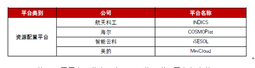 資源配置平臺(tái)一覽表(來源:工業(yè)互聯(lián)網(wǎng)平臺(tái)白皮書)