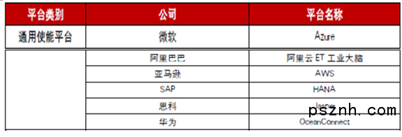 通用使能平臺(tái)主要提供云計(jì)算、物聯(lián)網(wǎng)、大數(shù)據(jù)的基礎(chǔ)性、通用性服務(wù),主要由ICT 企業(yè)提供。其中部分平臺(tái)側(cè)重于云服務(wù)的數(shù)據(jù)計(jì)算及存儲(chǔ),如微軟的Azure、SAP 的HANA、亞馬遜的AWS以及我國(guó)的阿里云、騰訊云等,部分平臺(tái)側(cè)重于物聯(lián)網(wǎng)的設(shè)備連接管理,如思科的Jasper、華為的OceanConnect 等。這類平臺(tái)為資產(chǎn)優(yōu)化及資源配置型工業(yè)互聯(lián)網(wǎng)提供技術(shù)支撐,如GE 的Predix 就部署于微軟的Azure 平臺(tái),此外,通用使能平臺(tái)還廣泛應(yīng)用于金融、娛樂、生活服務(wù)等各行業(yè)。