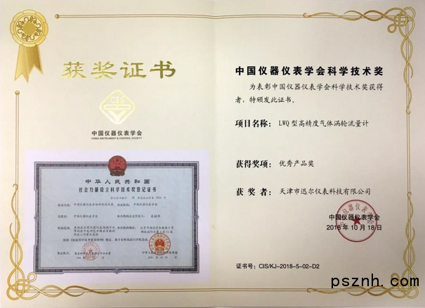 迅爾儀表在此次評選中,獲得了2018年中國儀器儀表學會科學技術優(yōu)秀產品獎:LWQ型高精度氣體渦輪流量計。